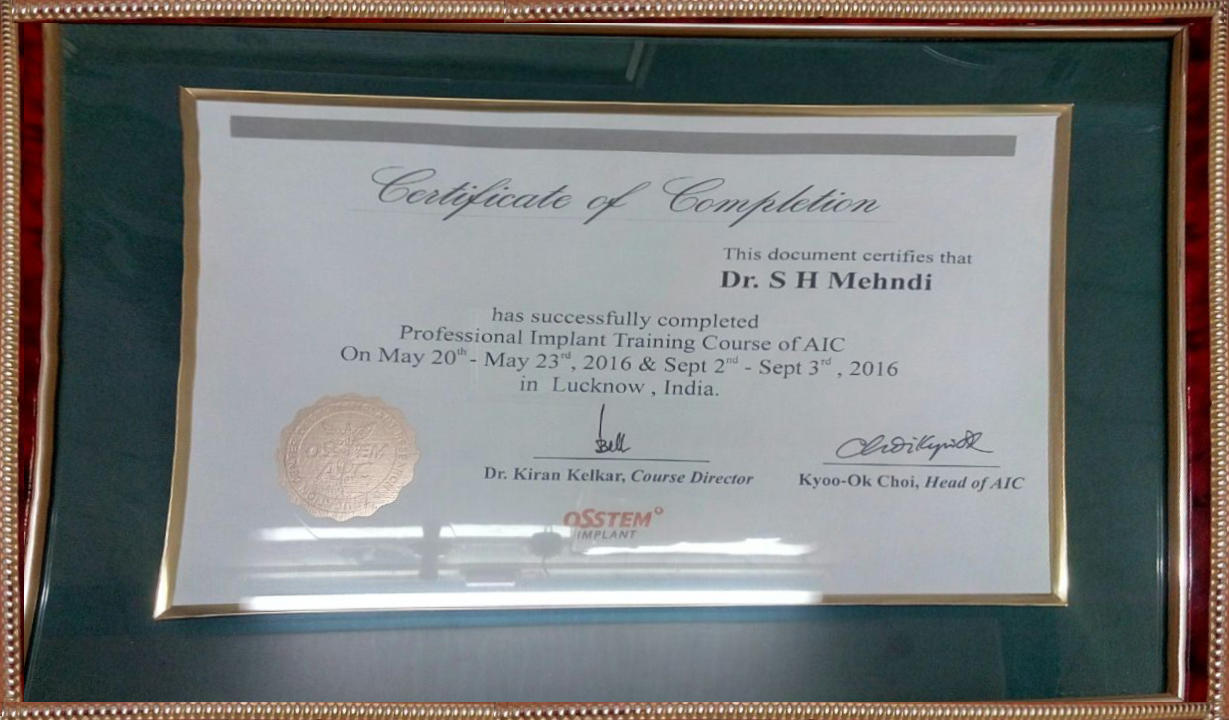 Certified by Dental Tribute America, University of California, AIC-Professional Training Implant Course.